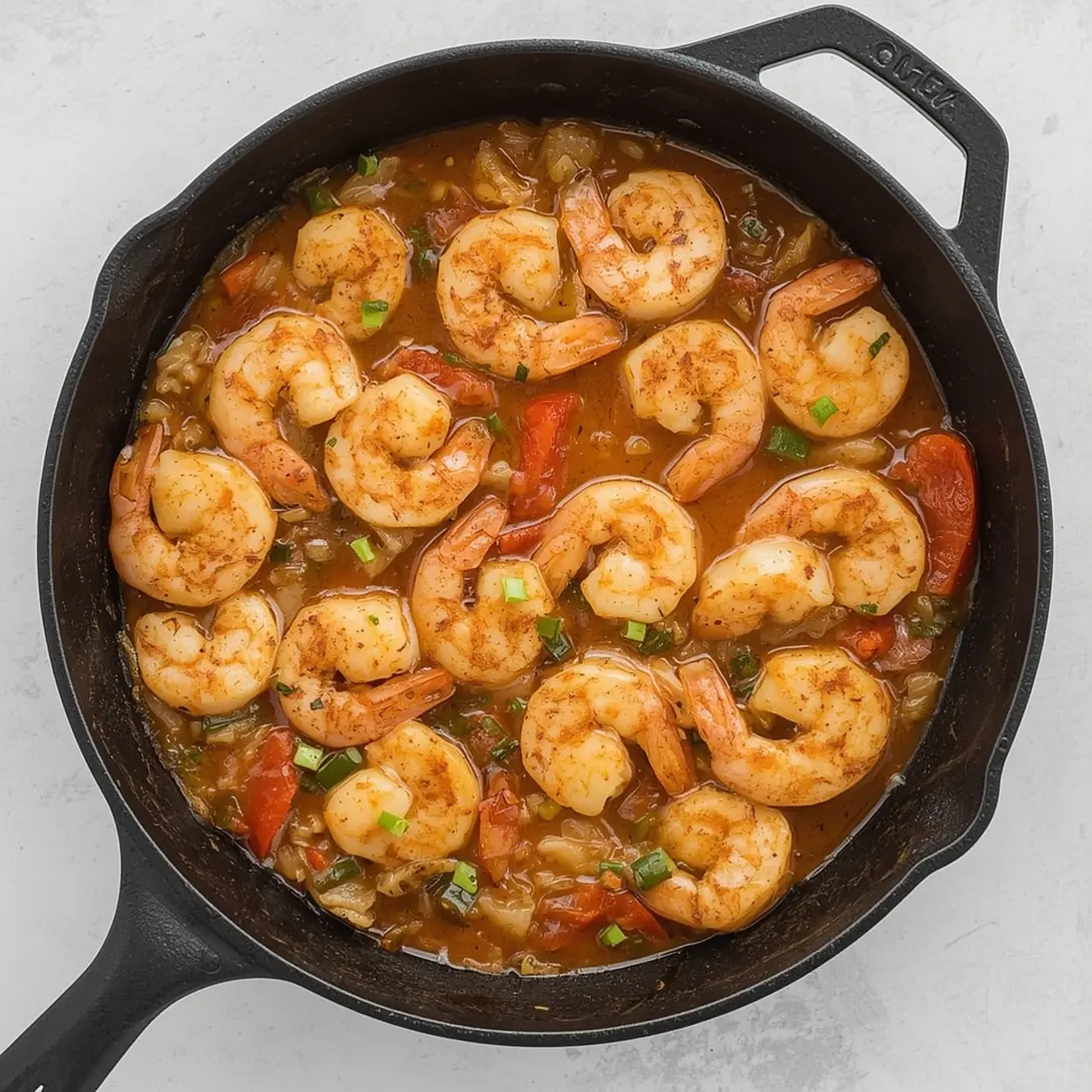 - Return the shrimp to the skillet, nestling them into the rice. Cook 2‑3 more minutes, allowing the shrimp to reheat and the flavors to meld.